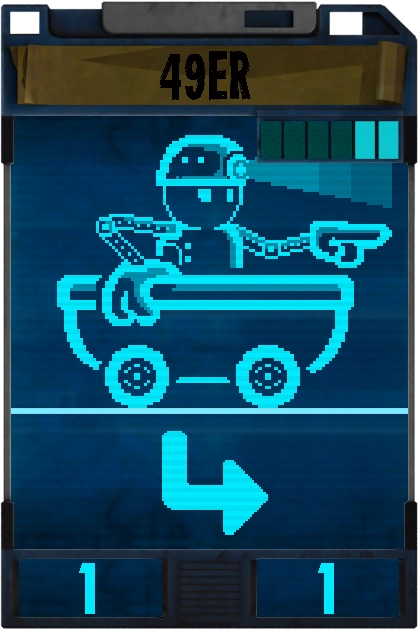 The 49er is a fairly cheap card to play, however it is predominantly pretty weak. As it has the Sprinter Sigil it can deal damage and then move out of the way to survive, though it is susceptible to a Sentry Drone this way. Improving it through Gemification or giving it a powerful Sigil can turn it into an effective early-play unit, though.