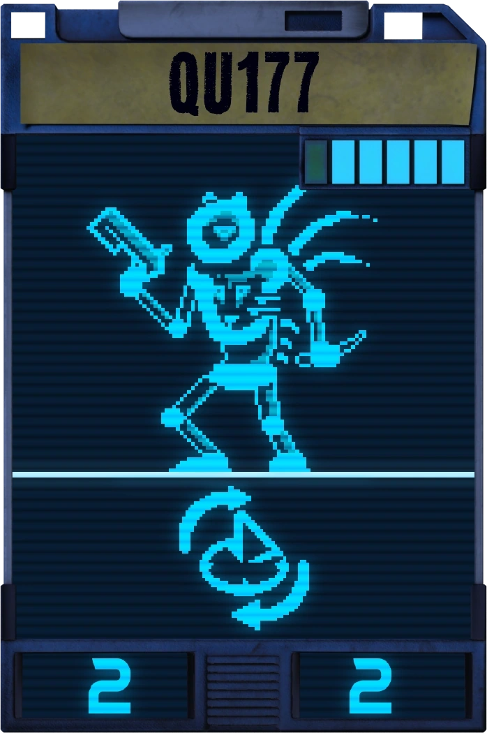 QU177 is one of the Technology cards from Act III of Inscryption. Upon transforming into its Beast Form, it loses 1 Power but gains the Sharp Quills Sigil.