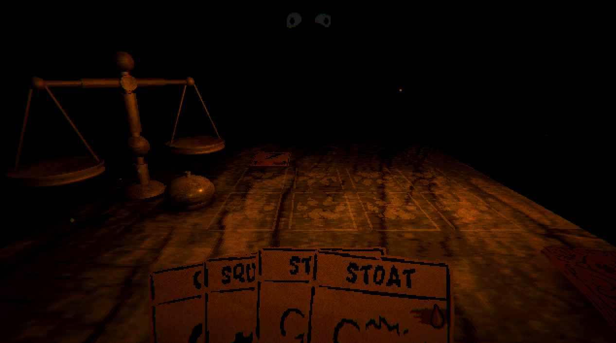 The game consisted of four rounds against the Mysterious Figure, and featured numerous cards such as The Stoat, Wolf, Wolf Cub, Squirrel, Raven, Cat, Adder, Warren, Hawk, Beehive, Bee, Elk, Starving Man (who appears as "Starvation" in Inscryption), Grizzly, Grizzly cub, bloated stoat and Hunter for battle. If the player won, they chose whether the Starving Man or the Hungry Child, (who appears as "Child 13" in Inscryption) was to be eaten.