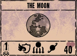 The Moon is a Special card in Act I of Inscryption. It is the sole card played during Leshy's third phase. The Moon is not a valid target for the Fish Hook or Scissors.