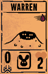 The Warren is a support card used to play high Blood cost cards and boost Bone income. Once played, it will generate a Rabbit in your hand that can be played for free, meaning that the Warren functionally refunds the 1 Blood cost to play it. While these attributes can be used defensively to block attacks, they're better suited to being sacrificed.